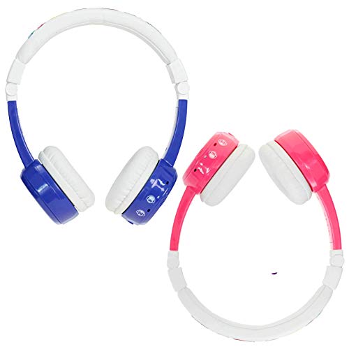 Up To 40% OFF ONANOFF BuddyPhones Inflight, Volume-Limiting Kids Headphones, 3 Volume Settings, Detachable BuddyCable, Microphone, Airline Adapter, Perfect for Airplanes, Trains and Cars, Blue and Pink